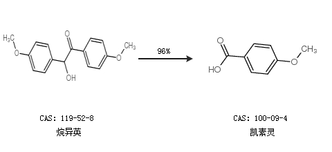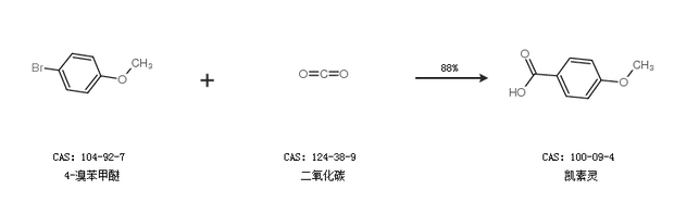 2.通過4-溴苯甲醚和二氧化碳合成凱素靈,收率約88%;