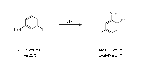 2.通過3-氟苯胺合成2-溴-5-氟苯胺,收率約11%;