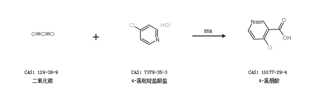 1.通過(guò)二氧化碳合成4-氯煙酸,收率約60%;
