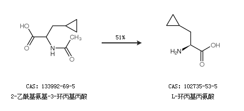 2.通過2-乙?;被?3-環(huán)丙基丙酸合成L-環(huán)丙基丙氨酸,收率約51%;
