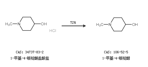 1.通過1-甲基-4-哌啶酮鹽酸鹽合成1-甲基-4-哌啶醇,收率約72%;