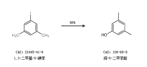 2.通過1,3-二甲基-5-碘苯合成間-5-二甲苯酚,收率約98%;