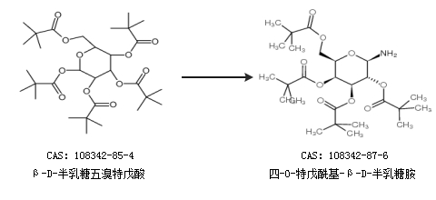 1.通過(guò)β-D-半乳糖五溴特戊酸合成四-O-特戊?;?β-D-半乳糖胺