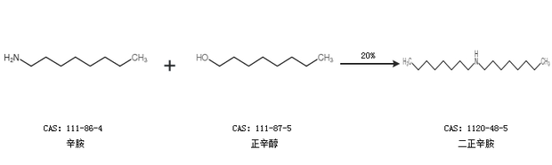 2.通過辛胺和正辛醇合成二正辛胺,收率約20%;