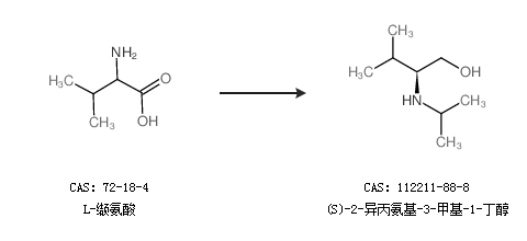 1.通過L-纈氨酸合成(S)-2-異丙氨基-3-甲基-1-丁醇