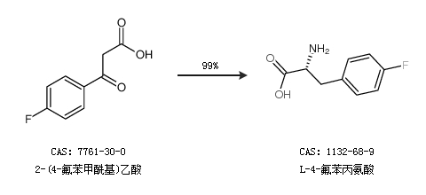 2.通過2-(4-氟苯甲?;?乙酸合成L-4-氟苯丙氨酸,收率約99%;