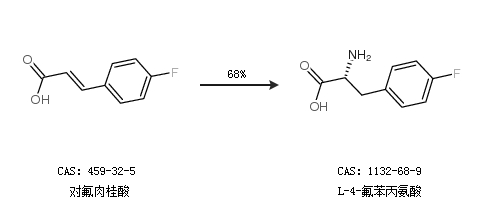 1.通過對氟肉桂酸合成L-4-氟苯丙氨酸,收率約68%;