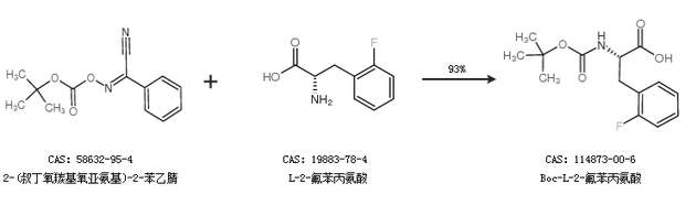 2.通過(guò)2-(叔丁氧羰基氧亞氨基)-2-苯乙腈和L-2-氟苯丙氨酸合成Boc-L-2-氟苯丙氨酸,收率約93%;