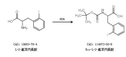 1.通過(guò)L-2-氟苯丙氨酸合成Boc-L-2-氟苯丙氨酸,收率約85%;