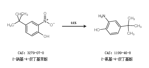 2.通過2-硝基-4-叔丁基苯酚合成2-氨基-4-叔丁基酚,收率約44%;