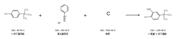 1.通過4-叔丁基苯酚、氯化重氮苯和碳黑合成2-氨基-4-叔丁基酚