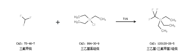 1.通過三氟甲烷和三乙基氯硅烷合成三乙基(三氟甲基)硅烷,收率約71%;
