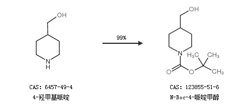 2.通過4-羥甲基哌啶合成N-Boc-4-哌啶甲醇,收率約99%;