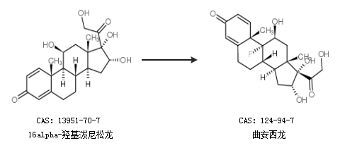 中文別名 氟羥潑尼松龍;曲安奈德;9a-氟-11b,16a,17a,21-四羥基-1,4-孕烯-3,20-二酮;9α-Fluoro-11β,16α,17,21-tetrahydroxy-1,4-pregnadiene-3,20-dione;