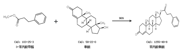 1.通過3-苯丙酸甲酯和睪酮合成苯丙酸睪酮,收率約96%;