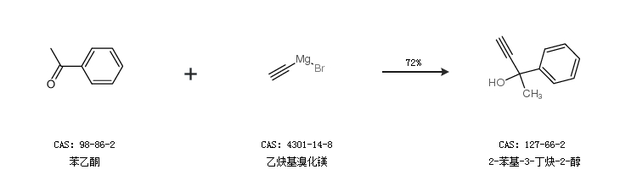 1.通過(guò)苯乙酮和乙炔基溴化鎂合成2-苯基-3-丁炔-2-醇,收率約72%;