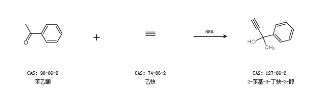 2.通過(guò)苯乙酮和乙炔合成2-苯基-3-丁炔-2-醇,收率約88%;
