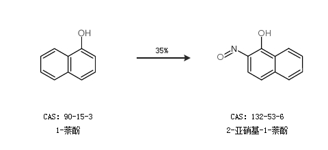 2.通過(guò)1-萘酚合成2-亞硝基-1-萘酚,收率約35%;