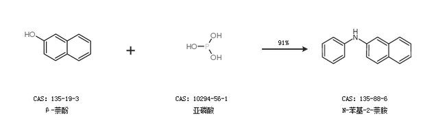 2.通過(guò)β-萘酚和亞磷酸合成N-苯基-2-萘胺,收率約91%;