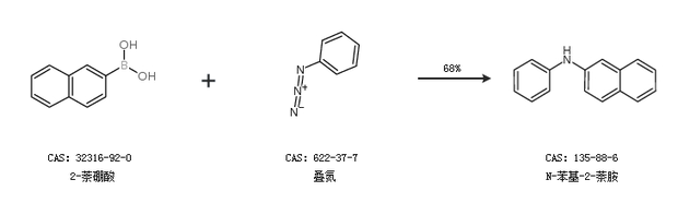 1.通過(guò)2-萘硼酸和疊氮合成N-苯基-2-萘胺,收率約68%;