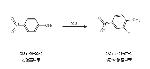 2.通過對(duì)硝基甲苯合成2-氟-4-硝基甲苯,收率約51%;