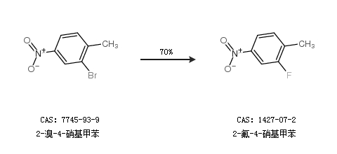1.通過2-溴-4-硝基甲苯合成2-氟-4-硝基甲苯,收率約70%;