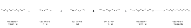 1.通過三縮四乙二醇、乙二醇、丁醛、二乙二醇和二縮三乙二醇合成三甘醇單丁醚