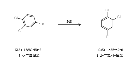 1.通過3,4-二氯溴苯合成1,2-二氯-4-氟苯,收率約34%;