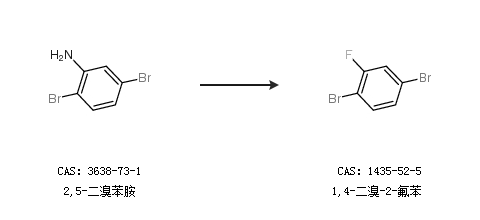 1.通過(guò)2,5-二溴苯胺合成1,4-二溴-2-氟苯