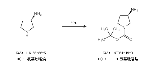 2.通過(R)-3-氨基吡咯烷合成(R)-1-Boc-3-氨基吡咯烷,收率約69%;