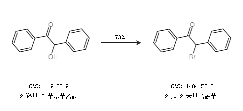 2.通過2-羥基-2-苯基苯乙酮合成2-溴-2-苯基乙酰苯,收率約73%;