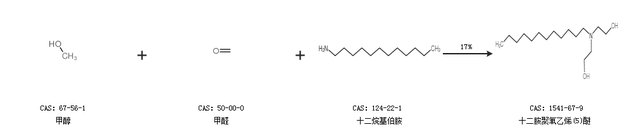 2.通過甲醇、甲醛和十二烷基伯胺合成十二胺聚氧乙烯(5)醚,收率約17%;