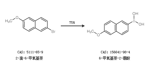 2.通過2-溴-6-甲氧基萘合成6-甲氧基萘-2-硼酸,收率約75%;
