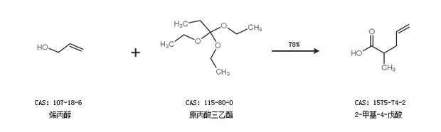 2.通過(guò)烯丙醇和原丙酸三乙酯合成2-甲基-4-戊酸,收率約78%;