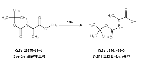 2.通過Boc-L-丙氨酸甲基酯合成N-叔丁氧羰基-L-丙氨酸,收率約99%;