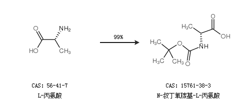 1.通過L-丙氨酸合成N-叔丁氧羰基-L-丙氨酸,收率約99%;