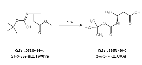 1.通過(s)-3-boc-氨基丁酸甲酯合成Boc-L-β-高丙氨酸,收率約97%;