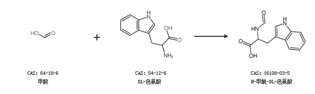 1.通過甲酸和DL-色氨酸合成N-甲酰-DL-色氨酸