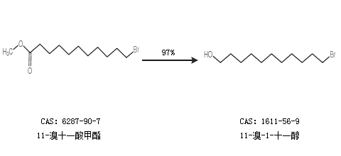 2.通過(guò)11-溴十一酸甲酯合成11-溴-1-十一醇,收率約97%;