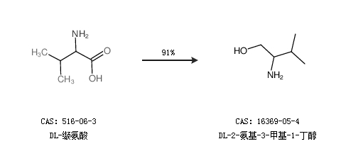 1.通過DL-纈氨酸合成DL-2-氨基-3-甲基-1-丁醇,收率約91%;