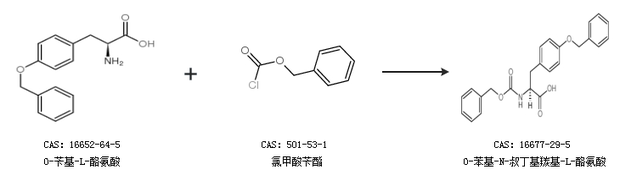 1.通過O-芐基-L-酪氨酸和氯甲酸芐酯合成O-苯基-N-叔丁基羰基-L-酪氨酸