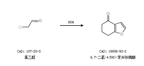 1.通過(guò)氯乙醛合成6,7-二氫-4(5H)-苯并呋喃酮,收率約65%;