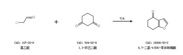 2.通過(guò)氯乙醛和1,3-環(huán)己二酮合成6,7-二氫-4(5H)-苯并呋喃酮,收率約71%;