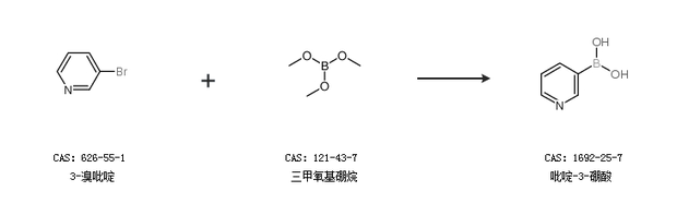 2.通過3-溴吡啶和三甲氧基硼烷合成吡啶-3-硼酸