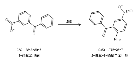 1.通過3-硝基苯甲酮合成2-氨基-5-硝基二苯甲酮,收率約28%;