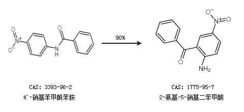 2.通過4''-硝基苯甲酰苯胺合成2-氨基-5-硝基二苯甲酮,收率約90%;