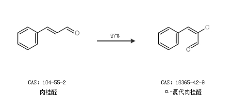1.通過(guò)肉桂醛合成α-氯代肉桂醛,收率約97%;