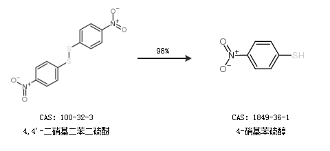 2.通過4,4''-二硝基二苯二硫醚合成4-硝基苯硫醇,收率約98%;