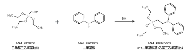 1.通過乙烯基三乙氧基硅烷和二苯基膦合成2-(二苯基膦基)乙基三乙氧基硅烷,收率約98%;