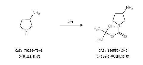 2.通過(guò)3-氨基吡咯烷合成1-Boc-3-氨基吡咯烷,收率約98%;